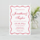 Torne o seu grande dia inesquecível com o nosso Convite para Casamento Vermelho e Rosa de Foto Ondulado Personalizado. Estes convites únicos de casamento misturam um estilo divertido e engraçado de convites de casamento com um tema de casamento encantador vermelho e rosa, perfeito para casais que procuram convites ecléticos de casamento. Para aqueles que buscam ideias de convites de casamento com fotos, esta design é ideal, oferecendo um "nod" para convites de casamento de Namorados e retro convites de casamento para uma celebração de destaque.