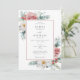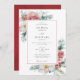 Este elegante convite para o casamento floral de Natal apresenta uma tipografia clássica, enquadrada com buquês de flores de aquarela e verde. No verso está um fundo de aquarela vermelho.