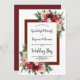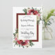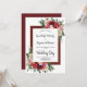 Este design, belo, moderno e rústico, apresenta buquês exuberantes de rosas vermelhas de marrom e bagas e flores de inverno como amarillis, anêmona e ranúnculo, juntamente com a vegetação florestal de inverno, incluindo o eucalipto e primaveras de coníferas verdes, incluindo o zimbro, o pinheiro e a espadilha, bem como pinecones e sementes de ouro eucalipto. Atrás dos buquês há um retângulo vermelho esujado e vermelho, de cor dourada, e na frente há uma área branca de cor dourada com o texto personalizável em tendências, roteiro elegante e tipografia sans serif. As costas estão combinando vermelho burgundy, perfeito para um Natal, feriado de inverno ou casamento no inverno. Você pode personalizar este item para seu evento especial alterando o texto no modelo do produto.
