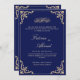 Marinho Azul, Dourado Convite ao Casamento Muçulmano Islâmico. Um design de convite à Nikah elegante, estilo clássico. A cor desta placa pode ser personalizada e as fontes também podem ser editadas. Envelope branco do vazio incluído. O tipo de papel pode ser escolhido por você. HerLineForDesign por Ayesha A.Hussain.