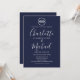 Com um nó de navio e nomes de estilo de assinatura, este convite de casamento náutico elegante pode ser personalizado com suas informações em letras brancas elegantes em um fundo azul marinho. Criado por Thisisnotme©