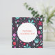 Pintura botânica moderna de aquarelas de flores aqua azuis e roxas selvagens sobre fundo escuro. Arte original de Nic Squirrell. Um belo convite para a recepção de casamento noturna que você pode alterar para se adequar à sua própria celebração.