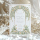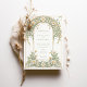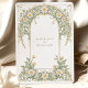 Este elegante convite de casamento apresenta um clássico design de Arte Nouveau adorado com belos marfim e margaridas verdes. A frente do cartão mostra padrões florais complexos entrelaçados com um trabalho de rolagem gracioso em tons de marfim e verde pastel macio. O design detalhado cria uma atmosfera eterno e romântica, perfeita para uma sofisticada celebração de casamento. O verso do convite continua o tema floral, destacando a data do casamento com um arranjo refinado de margaridas e folhas. Ideal para casais que buscam uma mistura de elegância tradicional e encanto artístico, esse convite incorpora a essência do romance e da natureza.