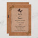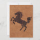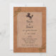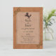 Convite de casamento no Terreno Ocidental com um olhar de couro marrom falso. Gráficos de um cavalo marrom escuro, cordas e estrutura prateada incrustada acrescentam um toque decorativo a este convite rústico. Personalize os campos de texto com suas informações.