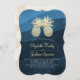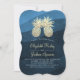Modelo de convite de casamento moderno - Casal de abacaxi de abacaxi de abacaxi de abacaxi de folha de ouro azul Elegante em Marinho Fundo de padrão de onda azul. Um Design perfeito para o seu grande dia. Todo estilo de texto, cores, tamanhos podem ser modificados para ajustado das suas necessidades!