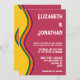 Coleção de casamentos de ondas assimétricas de ranhura retrorativa com uma paleta colorida rosa/vermelha, cor laranja e amarela, com sotaque e acentos roxos