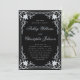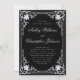 Este elegante convite de casamento preto e prateado com um ar vintage tem um falso quadro ornamentado de folha de alumínio prateado com decorações elegantes de cinzas de prata barroca num fundo preto. Os nomes da noiva e do noivo são escritos em um roteiro caligráfico elegante. Todo texto pode ser personalizado e tem uma cor de cinza de prata semelhante à falso quadro prateado. A vintage, falso quadro prateado ornamentado é baseada em um antigo enlace francês de cobrir de livros, de Georges Mercier (1885-1939) - Madame de Maupin por Theophile Gautier, edição 1911, agora no dominio público.