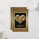 Convite de Casamento de Ouro do Festa de 50 Anos. Convide a família e os amigos para uma Celebração de Casamento de Ouros do Partido dos 50 anos de casal especial. Este cartão de convite é desenhado com um coração dourado brilhante com o texto: 50º Festa do Aniversário e nomes dos casais na parte frontal, sobre um fundo preto com quadro colorido de ouro. O verso inclui o texto: Data do evento, Hora, Local e Contato RSVP. em um plano de fundo preto com quadro dourado. Para personalizar simplesmente insira seus detalhes em nosso modelo fácil, substituindo o texto de exemplo. Nota: este convite está disponível no impressão e no download.