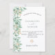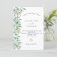 Um fundo branco-quic decorado com prigos botânicos de ouro verdes e falsos, florais verdes e folhagem. Personalize e adicione seus nomes e detalhes do casamento. Letras pretas e verdes. Verso: cor verde do fundo.