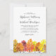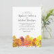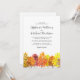 Convites de casamento de outono elegantes com árvores rústicas de aquarela da floresta em tons de amarelo, laranja e vermelho, e um modelo de celebração de casamento simples e fácil de personalizar.