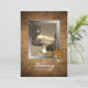 convite de casamento personalizável emoldurado em madeira rústica vintage é perfeito para casamento romântico ao ar livre, casamento de outono, casamento no campo ou casamento de cowboy western. A textura elegante da madeira com folhas de outono caprichosas e o design emoldurado por luzes de rua irá adicionar um toque sofisticado ao seu convite de foto!