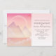Um convite de casamento com uma bela ilustração encantadora. Pastel de cor rosa e pêssego. Paisagem com planetas, montanhas e nuvens.