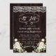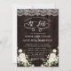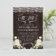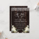 Design de cartão único, de vintage, com borda de local, escrita manual "No Last" e Recepção a Seguir", branco de aquarela, cantos de flores de creme, em um fundo de celeiro antigo. Use a ferramenta Personalizar para adicionar suas informações. Mais ideias na minha Coleção Boho Wedding.