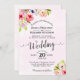 Este belo convite para o casamento apresenta pincéis coloridos pintados à mão ou flores silvestres num fundo cor-de-água rosa pálido. Perfeito para uma cerimônia de primavera, com um sentimento rústico ou de casa.
