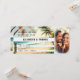 Um design de uma moda de um convite de casamento de passagem de avião com um tema de destino tropical (Havaí etc.) vai atrair casais e convidados, ansiosos pelo grande dia. Um tema de cor pastel suave, inspirado pela imagem da praia tropical que dá o pano de fundo para esse convite de casamento, ilustrações vintage como detalhes (avião, carimbo de hibisco) melhoram o encanto. Modelo para uma foto do casal feliz.
