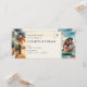 Um design de moda de um convite de casamento de passagem de avião com um tema de destino de praia tropical (Havaí etc.) com ilustração aquarela de uma praia tropical, encantará casais e convidados, ansiosos pelo grande dia. Modelo para uma foto do casal feliz. Um convite de casamento que inclui os detalhes no verso e o cartão RSVP com um código QR.