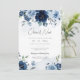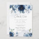 Convite Casamento de Pastel Floral Azul Elegante marinho D