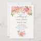 Pastel, rosa e pêssego, convite de casamento para peonias de cor d'água, projetado para ser fácil e rapidamente personalizável de acordo com as especificações do seu evento.