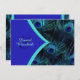 Elegante azul lacrimogêneo e convites de casamento pavão azul-real. Você pode personalizar facilmente este belo convite de casamento pavão azul real com sua escolha de estilo de fonte e cor de fonte.