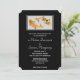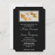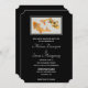 Um convite de casamento com uma ilustração de um par de peixes koi dourados nadando juntos. Fundo preto.