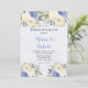 Convite Casamento de Penas Botânicas Azuis Amarelas Pálida