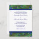 Elegante royal blue paciock penas convite de casamento modelo. Este belo convite de casamento para a pena de pavão azul e esmeralda é facilmente personalizado para o seu evento, simplesmente escolhendo o botão "Personalizar!" para começar a adicionar os detalhes do seu evento, estilo de fonte, tamanho de fonte e cor e texto. Observe que todos os adesivos, cartões e designs de convite que você encontrará no Zazzle são gráficos impressos sem joias reais, arcos, levantados, gravados, ou peças ou peças adicionadas.