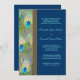 Penas de pavão com o convite de casamento de pavão azul-escuro de ouro azul-azul.