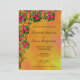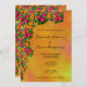 Um convite de casamento novo e rico. A borda superior e esquerda é rodeada por flores silvestres cor-de-rosa e laranja anjadas num leito de folhas verdes. O plano de fundo é um design abstrato com cores sábia girando misturando-se e misturando-se em amarelo alaranjado e rosa. Personalize facilmente com seus próprios detalhes de casamento.