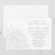 Um convite de casamento de paisagem refinada com uma única ilustração de peônia cinza no lado esquerdo e caligrafia cinza correspondente em um fundo branco. A paleta monocromática suave cria uma estética sofisticada e discreta com um fluxo tipográfico lindo. Todo o texto é totalmente editável para sua celebração.