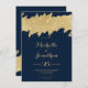 Convite Casamento de pincéis de ouro azul-marinho clássico