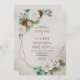Convite para casamentos no inverno elegantes com rosas brancas, pínus, verde e eucalipto. Este design de floral e folhagem de aquarelas está sobre um fundo neutro com tipografia elegante em preto e marrom de cobre. Perfeito para o outono, inverno, ano novo e temas de natal. Por favor, procure na minha loja itens correspondentes na coleção de rosa branca de inverno.