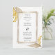 Um convite para o casamento de um abstrato de luxo branco e dourado brilhando brilho floral confetti é perfeito para qualquer cerimônia elegante e sofisticada. Este design elegante, deslumbrante e brilhante é ideal para o casal de tendências e na moda. Personalize este design com sua própria mensagem e informações personalizadas. Todas as designs são impressas.