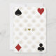 Design de cartão exclusivo com tema Casino Royale e Great Gatsby. Apresenta estilo art déco vintage, velho Hollywood dos anos 20, par de dados, naipes de cartas, cartas de jogo. São usadas palavras especiais como no jogo de pôquer. No verso, padrão Art Déco dourado falso, iniciais e naipes de cartas. Use a ferramenta Personalizar para adicionar suas informações. Para mais, visite, por favor, minha Coleção Gatsby Casino.