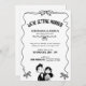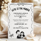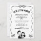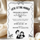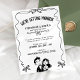 Rebelde e moderno, este convite de casamento preto-e-branco apresenta um quadro de fita ondulada solteiro com pequenos arcos e uma doce ilustração de casal desenhada à mão. A manchete arquivada e o layout limpo deixam espaço generoso para seus nomes, data e local, e você pode mudar as cores de todas as ilustrações para combinar perfeitamente com a paleta de casamento. O trabalho de arte monocromático impressão lindamente em qualquer papel e funciona tão bem para comemorações de quintal, elopementos de cidades ou cerimônias clássicas. Personalize o texto com os seus detalhes e sinta-se à vontade para me enviar uma mensagem se quiser coordenar peças.