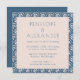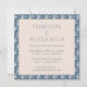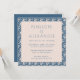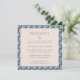 Este moderno convite de casamento quadrado botânico apresenta uma composição minimalista e uma simples tipografia em azul e branco com um padrão floral na moda.