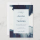 Uma praia, modelo de convite para casamento oceânico que apresenta uma cor d'água pintada, abstrato com ondas azuis marinhos com efeito de tinta dourada (o ouro é um efeito digital, não uma folha de papel real!). Clássico e elegante, simples e moderno, é uma escolha encantadora para um casamento de praia de outono ou inverno - ou simplesmente um casamento de outono, inverno ou qualquer hora para um casal que ama azul marinho e design moderno.