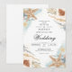 Evoca uma atmosfera serena à beira-mar com delicadas lavagens de aquarelas de azul, areia e sotaques de concha. Uma bela design para uma união inspirada no oceano.