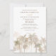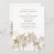 Palm Trees de Palma Costeira Convite para Casamento de Praia que você pode editar facilmente clicando no botão "Personalizar". Perfeito para destino costeiro ou celebração de casamento na praia. DICA: Outros suprimentos de casamento, cardápio, programa e muito mais são curados abaixo com este design de correspondência para sua conveniência