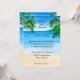 Tema da praia Convites de Casamento com águas azuis tropicais e palmeiras. Convites de casamento de excelente para casamentos de praia ou destino. Arte de praia com uma praia arenosa, palmeiras e fundo azul tropical para seu convite personalizado. RSVP correspondente, Obrigado e outros produtos de casamento disponíveis.