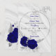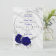 elegante luxo flores azuis reais com algumas cinzas prateadas folhas coroa coroa coroa botânica contra o convite para casamento de fundo de mármore Os detalhes de brilho são simulados