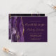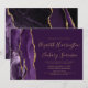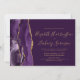 A borda esquerda deste elegante convite de casamento moderno apresenta uma cor d'água roxa, borda agitada, aparada com falso brilho dourado. O texto personalizável combina manuscrito dourado, fontes em copperplate e itálico em um fundo rico em ameixa. O verso apresenta um design de agate roxo e dourado correspondente.