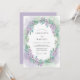 Este design apresenta uma delicada lavagem de aquarela em tons suaves de lavanda e verde sálvia. Uma coroa etérea de pequenas flores silvestres e folhas de salgueiro cria uma atmosfera romântica e aérea. As bordas suaves e mescladas e a paleta pastel evocam um senso de elegância serena de primavera.