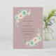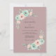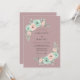 Este design apresenta um fundo cor-de-rosa suave adornado com delicados arranjos florais em aquarela. Elegantes flores de ranúnculo em verde-menta e rosa-beijo são combinadas com folhas de eucalipto cinza-prata para um ambiente sereno e romântico. A composição artística cria um estilo sofisticado perfeito para um evento sazonal.