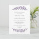 Este convite para o casamento da primavera apresenta duas galerias suavemente arquejando em tons suaves roxos que enquadram seu texto formal e a tipografia elegante. Personalize ainda mais este convite mudando a cor de fundo de branco para a cor de sua escolha e adicione sua foto de noivado favorita ao backer para um verdadeiro convite.