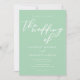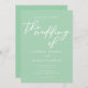 Este convite de casamento verde de menta macia apresenta um roteiro branco chic para uma doce cerimônia de primavera ao ar livre. Simples tipografia em um convite verde pastel sólido tranquilo para um local de jardim.
