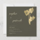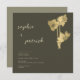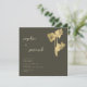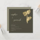 Um monte de narcisos moldam flores, desenhados à mão em lápis de grafite preta e dispostos digitalmente com ouro (folha não real), decora esta elegante, moderna, simples e sofisticada modelo de convite para casamento da primavera que apresenta uma tipografia moderna simples e minimalista, caligrafia moderna em nome da noiva e do noivo e um fundo verde-sábio escuro.