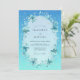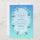 Este design apresenta um fundo gradiente vibrante que transita de um azul celeste profundo para um aqua suave. Um arranjo delicado de flores e folhas delicadas em estilo aquarela envolve o centro, criando um clima sereno. A paleta é dominada por tons frios, incluindo turquesa e azul-verde, que evocam uma atmosfera fresca de primavera. Elementos florais sutis que lembram flores de macieira adicionam elegância natural à obra de arte botânica.