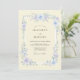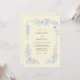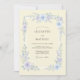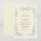 Este design apresenta uma paleta suave de rosas azuis pervinca e lavanda contra um fundo creme quente. Ramalhetes delicados de eucalipto e folhagens criam uma estética botânica serena perfeita para um casamento romântico de primavera. O estilo de aquarela fornece um sentimento elegante e arejado, capturando a essência de uma cerimônia sazonal pacífica.