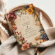 Celebre seu amor cercado pelas ricas cores do outono. Este elegante design apresenta flores ilustradas à mão e frutas de outono em tons de piche de abóbora quente, perfeito para uma celebração acolhedora e rústica. Totalmente personalizável para refletir seu estilo único de casamento.
