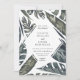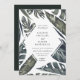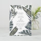 A estrutura de folha de diamante dos trópicos modernos, convite de casamento. O cartão apresenta uma bela folhagem verde de folhas pintadas de ilhas tropicais, estilo moderno de design de tipografia, e coordena sombra de respaldo de cor verde de caçador.
